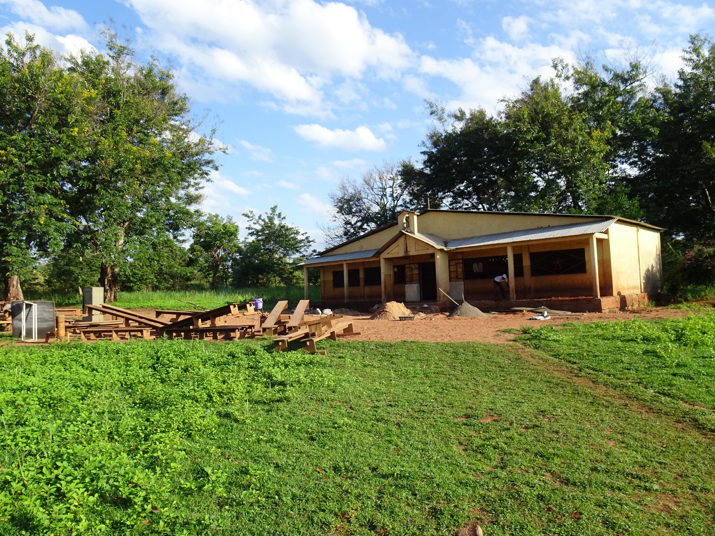 El martes por la mañana marché antes de las 6'00, y llegué a Bayanga Didi después de la 8.30. Llevé conmigo un catequista, y tres albañiles para arreglar el pavimento del porche de la iglesita, muy deteriorado por el tiempo (y por las cabras). Mezclo un poco el tiempo entre las obras y los exámenes, y por la tarde hemos llegado a un buen punto. Tengo tiempo también de dar una vuelta por el poblado. Hay un pequeño ambulatorio, y una sala de maternidad. Y la escuela estatal, en la que la última clase ha sido el 20 de abril. Hay, pues, que hacer algo por las escuelas en esta parte del país.